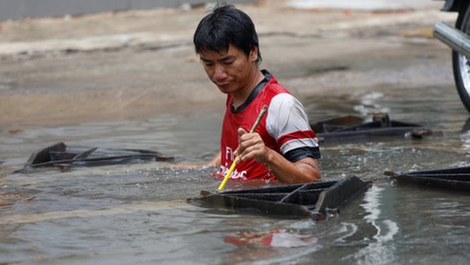 “Sáng ra tưởng nước đã hết ngập, ai ngờ nước vẫn còn mênh mông không khác gì hôm qua. Xe thì hư, đường ngập nước tôi phải nghỉ việc ở nhà”, anh Thành nói.